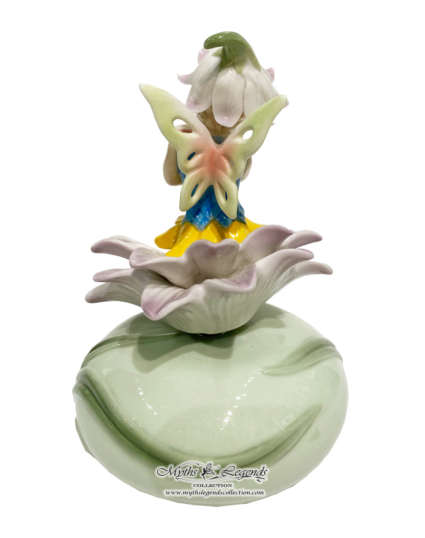 As an added feature, this is also a music box that plays a sweet spring tune when the key underneath is wound. The fairy also turns gently in time with the music.