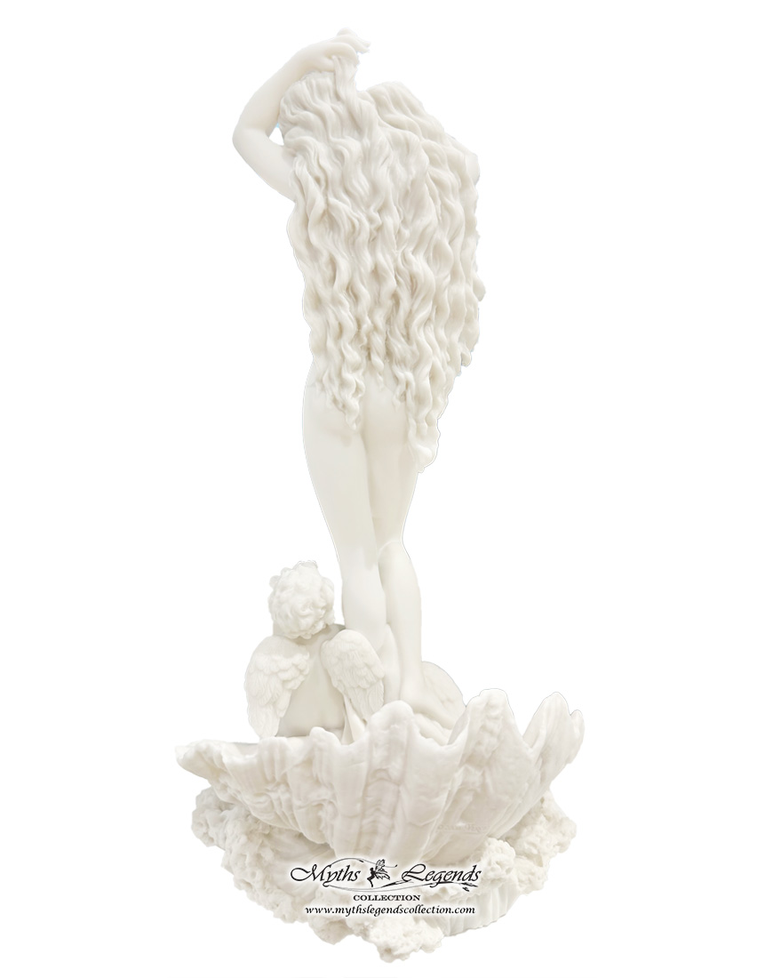 Aphrodite or Venus in ancient Roman culture is the Greek goddess of Love and Beauty. This sculpture recreates the famous painting, “Birth of Venus”, where she is depicted as pure and perfect as a pearl on a giant shell.