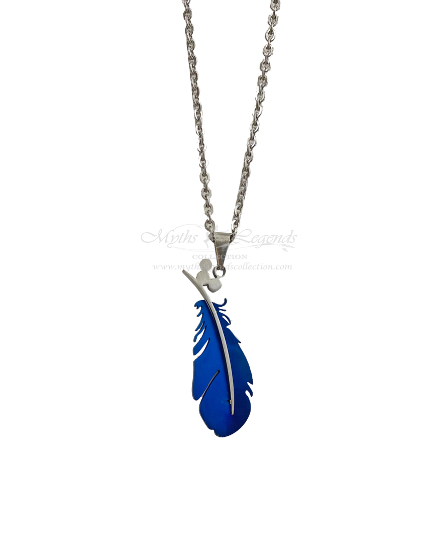 The Angel’s feather symbolises the protection and luck of an Angel. An Angel may not just the ones from heaven – they may be someone who brightens up your days, or has extended a helping hand in your times of need. The feather is coloured a vibrant blue and is stainless steel.