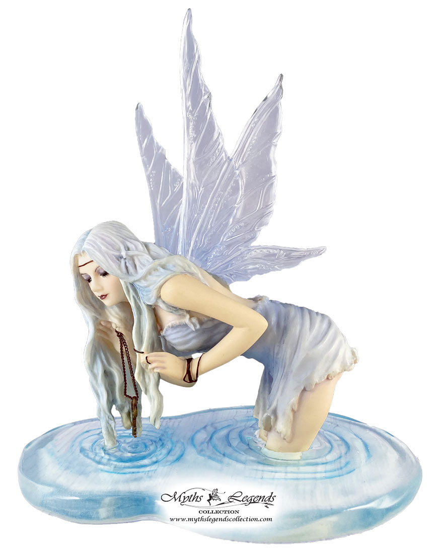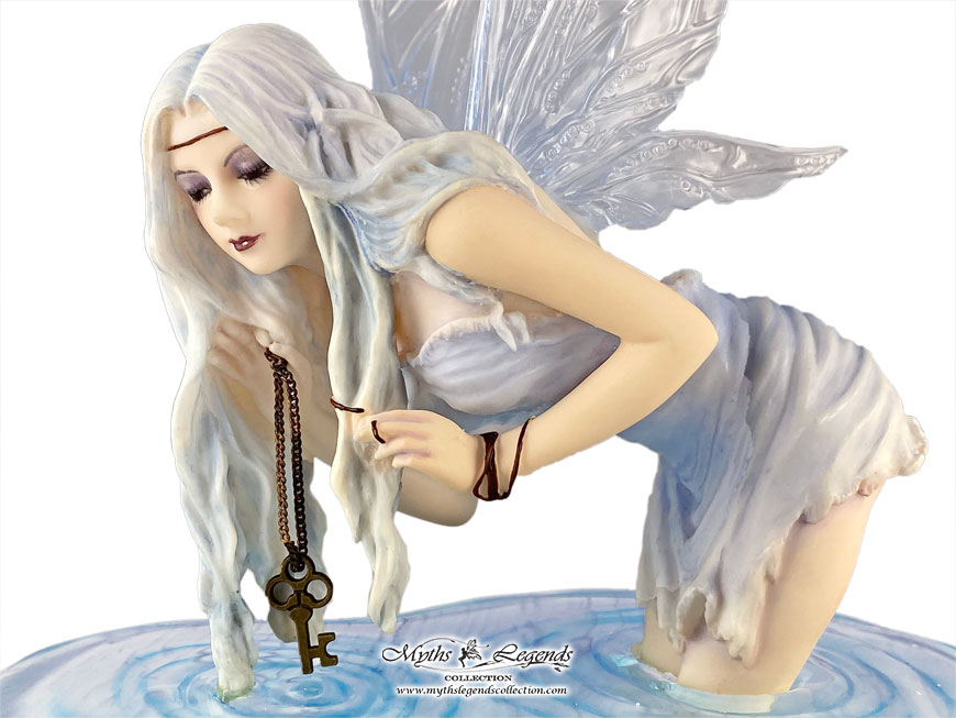This is a sculpture of a Fairy with a key to a question in her hand. However, without the riddle, the key has no meaning to it and this is what she searches for. Beautifully hand-painted and sculpted by the talented Australian artist, Selina Fenech, the fairy is portrayed standing in the Pool of Wisdom as she searches for the question that goes to her answer symbolised by the key in her hands.