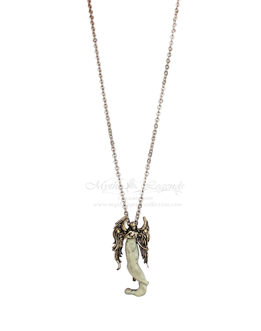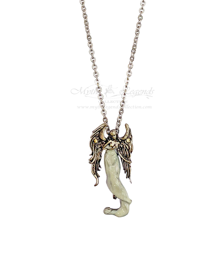 This is detailed pewter piece shaped in an angel and the chain is made from high quality stainless steel.
