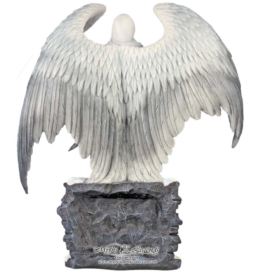 This is a statue of Guardian Angel, shrouded in secrecy and mystery. He holds a sword ready to defend the innocent from harm. The sword represents honour and courage. This is a beautifully hand-painted sculpture that lends an aura of mystery to any space. Not having a face also represents the fact that anyone can be a hero.