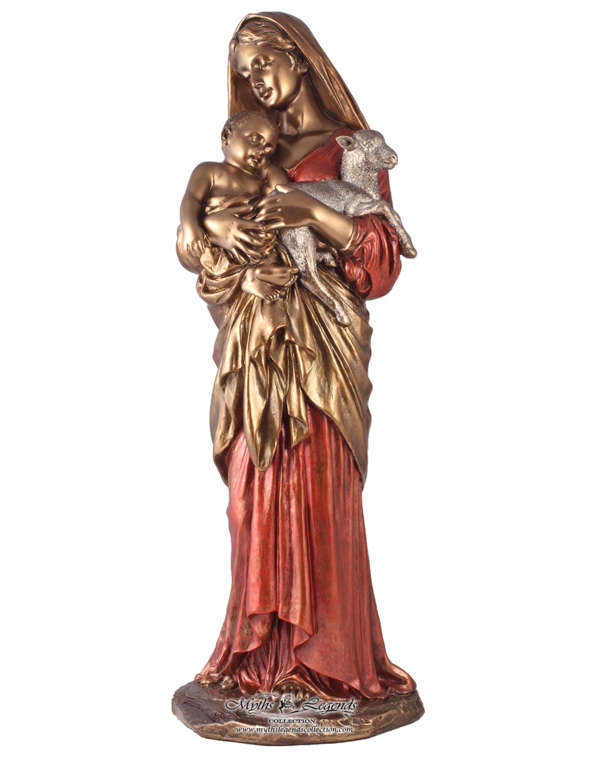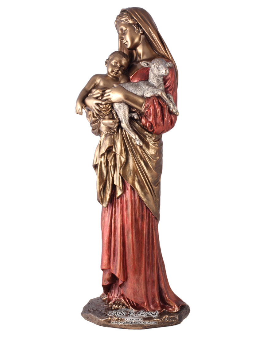 This statue is a realisation of the famous painting L’Innocence by William Bouguereau, a French artist. In Innocence, the Virgin Mary is seen holding her sleeping son Jesus on one hand, and on the other, a little lamb. The painting signifies the future sacrifice of Jesus and the peace and innocence of childhood.