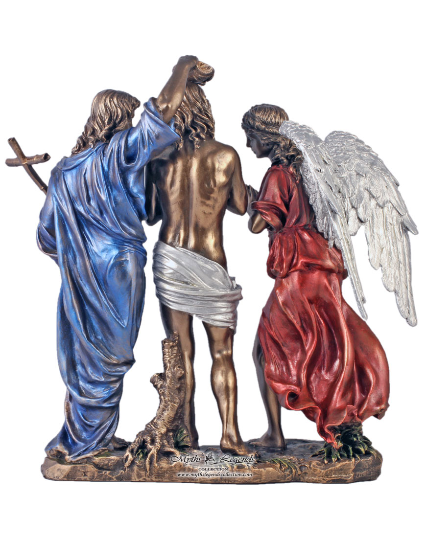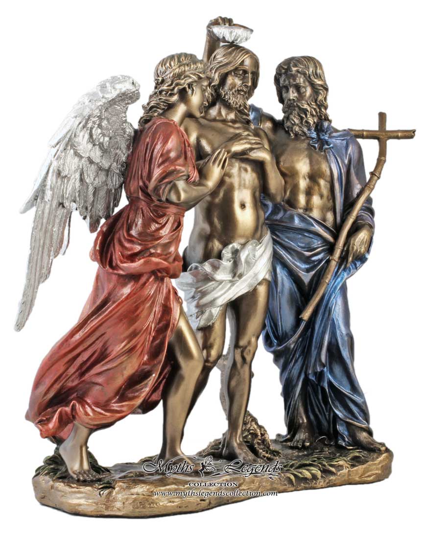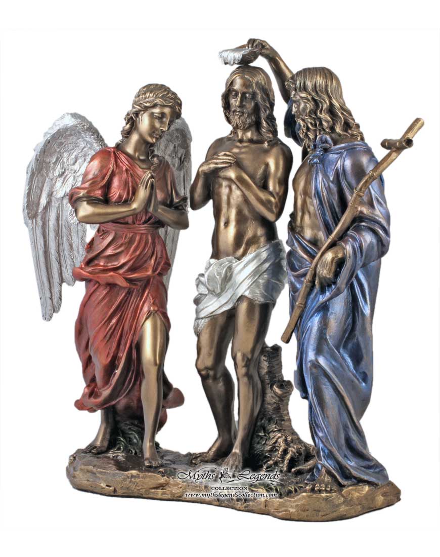 This is a beautiful sculpture depicting the moment Jesus Christ was baptised by John the Baptist. An angel is also portrayed as a witness from God for this significant event.
