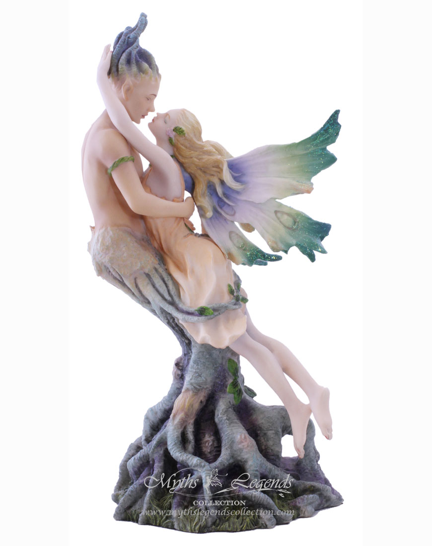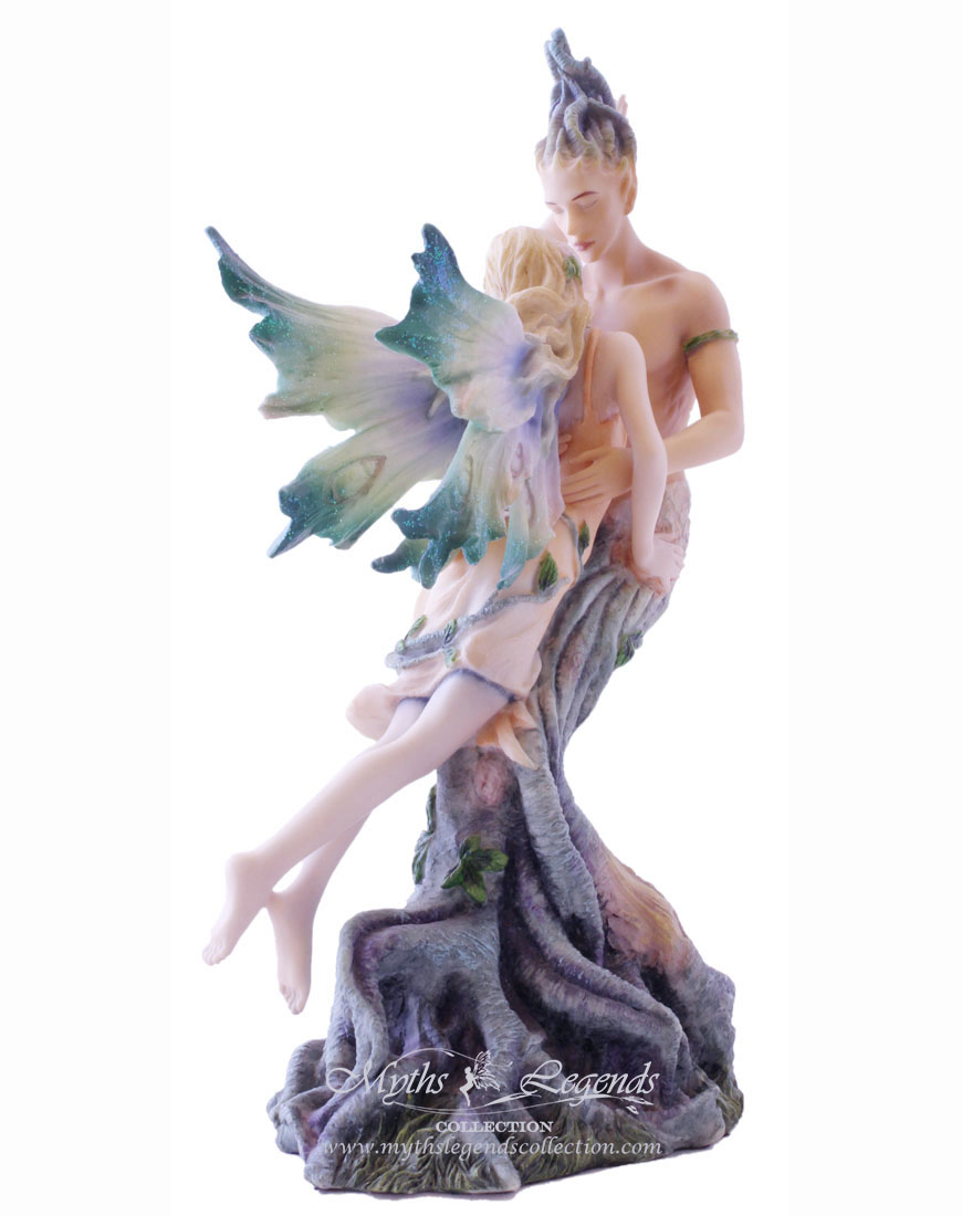 There once was a tree man and a fairy. With her wings, the fairy was able to fly where her heart pleased. The tree man on the other hand, was eternally in one place, unable to move from where he grew up. The tree man was curious about the wide world around him and the fairy told him what she saw daily. The tree spirit made sure that the woods around him was always different and beautiful for his special visitor. She found herself visiting him more and more and thus, despite their differences, they grew in love for each other.